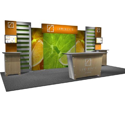 Note: *All 10’ x 10’ and 10' x 20' exhibit renderings show 6 (20w) halogen lights. EXPONENTS now ships 4 (50W) halogen lights instead. Total wattage is increased. The price remains unchanged.